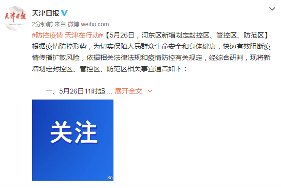 天津河東區(qū)新增劃定封控區(qū)、管控區(qū)、防范區(qū)
