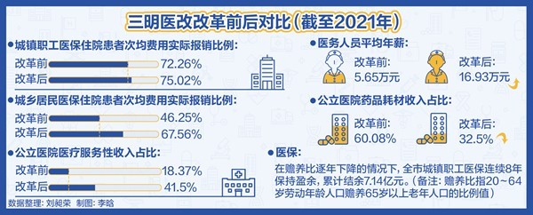 此外,通過實行醫(yī)保總額付費、結(jié)余留用激勵機制,緊密型縣域醫(yī)共體將更多工作轉(zhuǎn)向健康管理,試點地區(qū)參保居民住院率從2019年的24%下降至2020年的15%,醫(yī)保實際報銷比提高到61.2%,好于全國平均水平,群眾醫(yī)療費用負擔(dān)減輕。