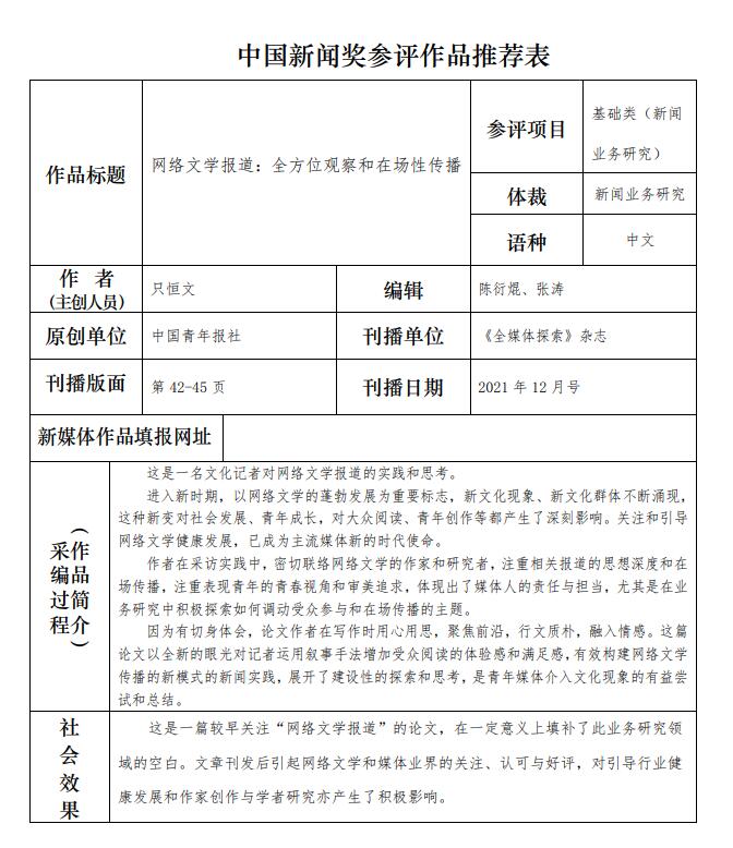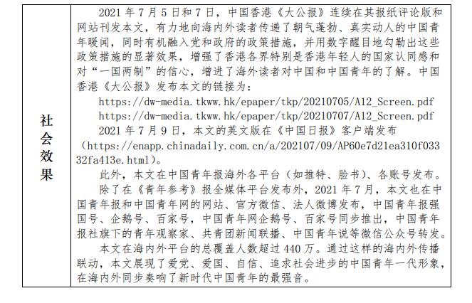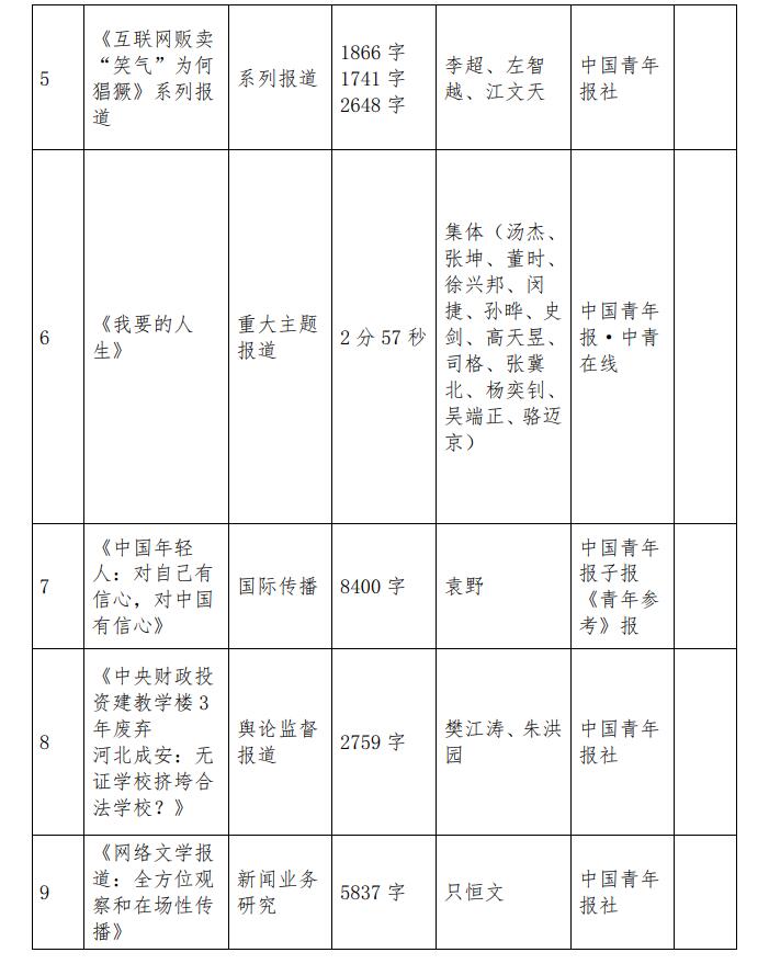 中國青年報社推薦參評第三十二屆中國新聞獎報送作品公示