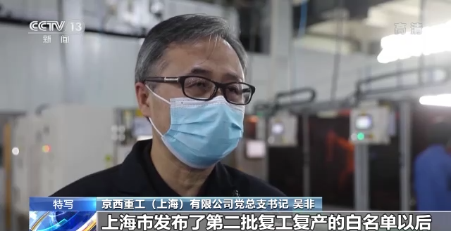 京西重工(上海)有限公司黨總支書記 吳非:上海市發(fā)布了第二批復(fù)工復(fù)產(chǎn)的白名單以后,政府及時(shí)地跟公司進(jìn)行對接,整個(gè)上海對企業(yè)的復(fù)工復(fù)產(chǎn)可以說是上報(bào)一批就及時(shí)地批復(fù)了一批。