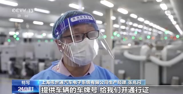 上海偉世通汽車電子系統(tǒng)有限公司生產(chǎn)經(jīng)理 張兆閃:物流通道方面說真的政府也已經(jīng)給了我們很多的支持,比如說提供車輛的車牌號和給我們開通行證等。