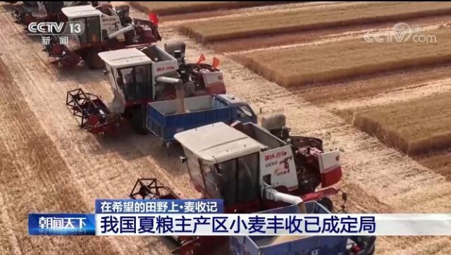 央視網(wǎng)消息:夏糧是全年糧食生產(chǎn)第一季,產(chǎn)量占全年糧食產(chǎn)量五分之一多,其中90%以上都是小麥。農(nóng)業(yè)農(nóng)村部22日發(fā)布的小麥機收進度顯示,夏糧主產(chǎn)區(qū)小麥大規(guī)模機收基本結束,豐收已成定局。