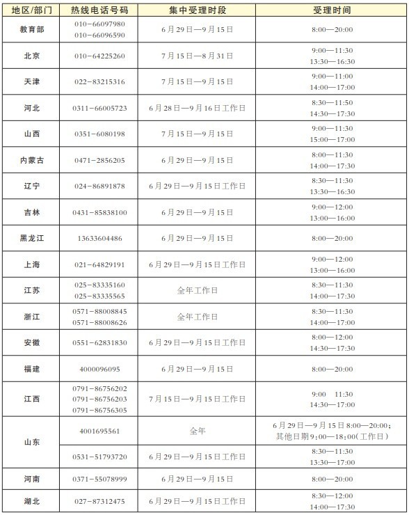 教育部要求各省區(qū)市及所屬高校、中央高校學生資助管理部門均開通熱線電話,并結(jié)合實際情況自行確定集中受理時段和具體受理時間。