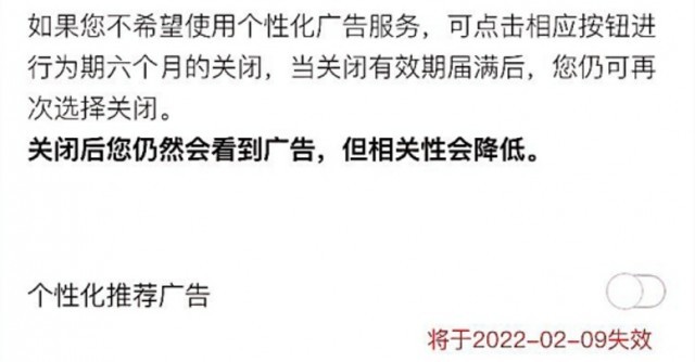警惕用戶這種拒絕權(quán)流于形式,需要平臺自覺維護。記者通過對比發(fā)現(xiàn),在其他平臺個性化廣告設置端口,明顯提示“你可以開啟或關閉服務,或管理廣告興趣標簽。廣告總數(shù)不會因此變化。”也就意味著將選擇或拒絕權(quán)交到了用戶手中,雖然關閉后還是會接收到隨機推送的廣告,但這些廣告并非是針對用戶個人興趣點“計算”出來的。