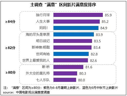 中國電影觀眾滿意度調(diào)查:近三個月15部影片中有13部進入“滿意”區(qū)間