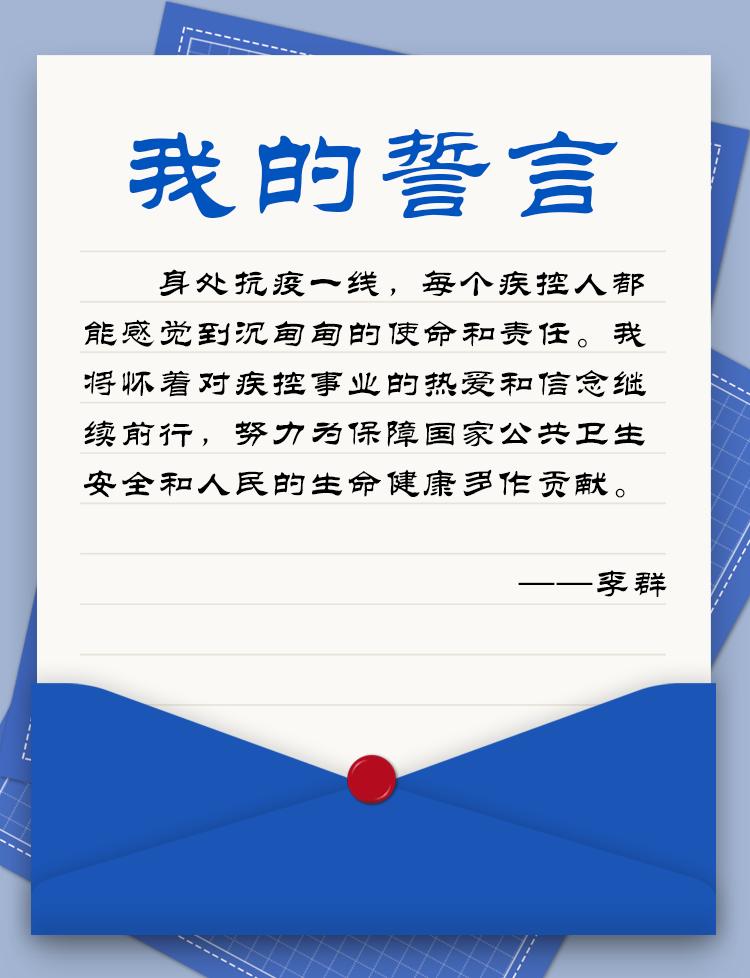 被選為黨的二十大代表后,李群說:“深感使命光榮、責任重大。我是全國21萬‘疾控人’中的普通一員,我們是平凡的‘疾控人’,但承擔著不平凡的疾控責任——守護人民健康和生命安全。”