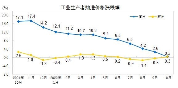 國家統(tǒng)計局:10月份工業(yè)生產(chǎn)者出廠價格同比下降1.3% 環(huán)比上漲0.2%