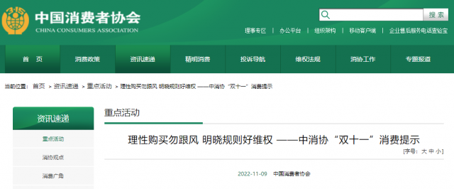 - 中消協(xié)發(fā)布“雙十一”消費提示:留心促銷規(guī)則,規(guī)避消費套路