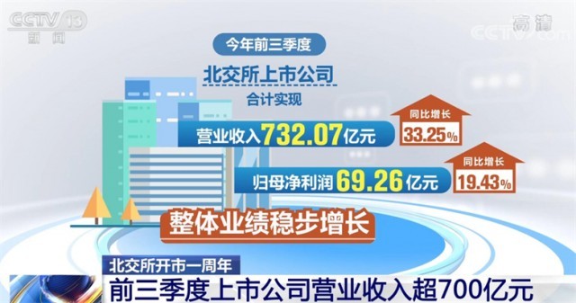 今年前三季度,北交所上市公司合計實現(xiàn)營業(yè)收入732.07億元,同比增長33.25%;實現(xiàn)歸母凈利潤69.26億元,同比增長19.43%,整體業(yè)績穩(wěn)步增長。88家公司發(fā)布現(xiàn)金分紅方案,分紅公司家數(shù)占比超7成,合計分紅金額達23.61億元,惠及近80萬名投資者。