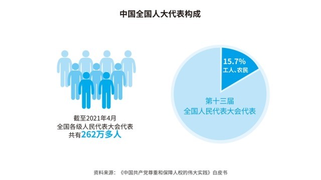 中國從本國國情實際出發(fā),不斷發(fā)展全過程人民民主,完善人民當(dāng)家作主制度體系,建立了人民代表大會制度、中國共產(chǎn)黨領(lǐng)導(dǎo)的多黨合作和政治協(xié)商制度、民族區(qū)域自治制度和基層群眾自治制度,為人民享有更加廣泛、更加充分、更加全面的民主權(quán)利奠定了堅實的制度基礎(chǔ)。