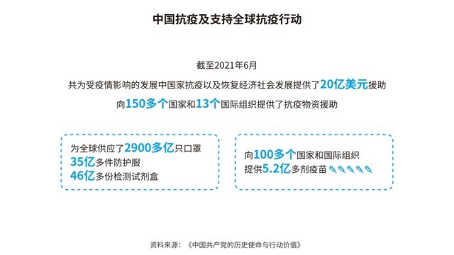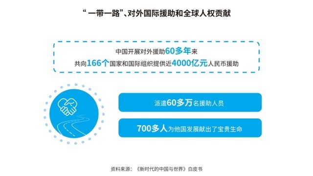 中國先后批準(zhǔn)或加入了30余項國際人權(quán)文書,其中包括6項聯(lián)合國核心人權(quán)條約;累計共向166個國家和國際組織提供了援助,派遣60多萬名援助人員;多次無條件免除重債窮國和最不發(fā)達(dá)國家對華到期政府無息貸款債務(wù)。在聯(lián)合國維和行動中,中國是安理會常任理事國第一大出兵國,30多年來累計派出維和官兵5萬余人次。共建“一帶一路”已成為助力各國發(fā)展、深受世界歡迎的新興國際公共產(chǎn)品,據(jù)世界銀行研究報告,到2030年,將使相關(guān)國家760萬人擺脫極端貧困、3200萬人擺脫中度貧困。新冠肺炎疫情暴發(fā)以來,中國努力促進新冠疫苗在全球范圍內(nèi)公平合理分配,成為全球?qū)ν馓峁┮呙鐢?shù)量最多的國家。