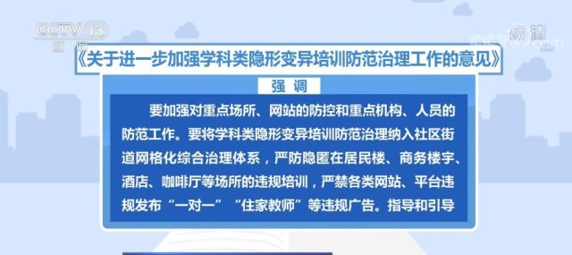 央視網(wǎng)消息:近日,教育部辦公廳等十二部門聯(lián)合印發(fā)了《關(guān)于進(jìn)一步加強(qiáng)學(xué)科類隱形變異培訓(xùn)防范治理工作的意見》?!兑庖姟芬?,到2024年6月,全面清除隱形變異培訓(xùn)。
