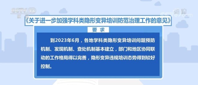 《意見》要求,到2023年6月,各地學(xué)科類隱形變異培訓(xùn)問(wèn)題預(yù)防機(jī)制、發(fā)現(xiàn)機(jī)制、查處機(jī)制基本建立,部門和地區(qū)協(xié)同聯(lián)動(dòng)的工作格局得以完善,隱形變異違規(guī)培訓(xùn)態(tài)勢(shì)得到較好控制。到2024年6月,學(xué)科類隱形變異培訓(xùn)防范治理的長(zhǎng)效機(jī)制得到健全,治理工作態(tài)勢(shì)持續(xù)向好,隱形變異培訓(xùn)得以全面清除。