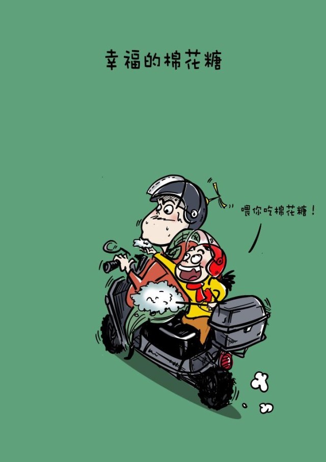 摩托車上吃一大口棉花糖