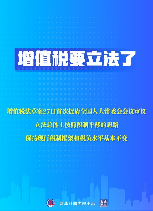 增值稅法草案提請(qǐng)十三屆全國(guó)人大常委會(huì)第三十八次會(huì)議首次審議