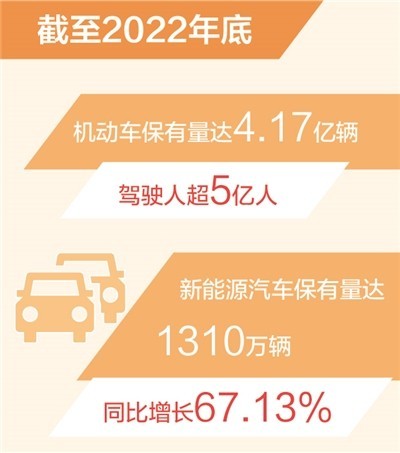 本報(bào)北京1月11日電 (記者張?zhí)炫啵┕膊?1日發(fā)布統(tǒng)計(jì)顯示,2022年全國機(jī)動(dòng)車保有量達(dá)4.17億輛,其中汽車3.19億輛;全國機(jī)動(dòng)車駕駛?cè)诉_(dá)5.02億人,其中汽車駕駛?cè)?.64億人。2022年全國新注冊(cè)登記機(jī)動(dòng)車3478萬輛,新領(lǐng)證駕駛?cè)?923萬人。