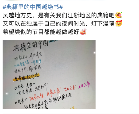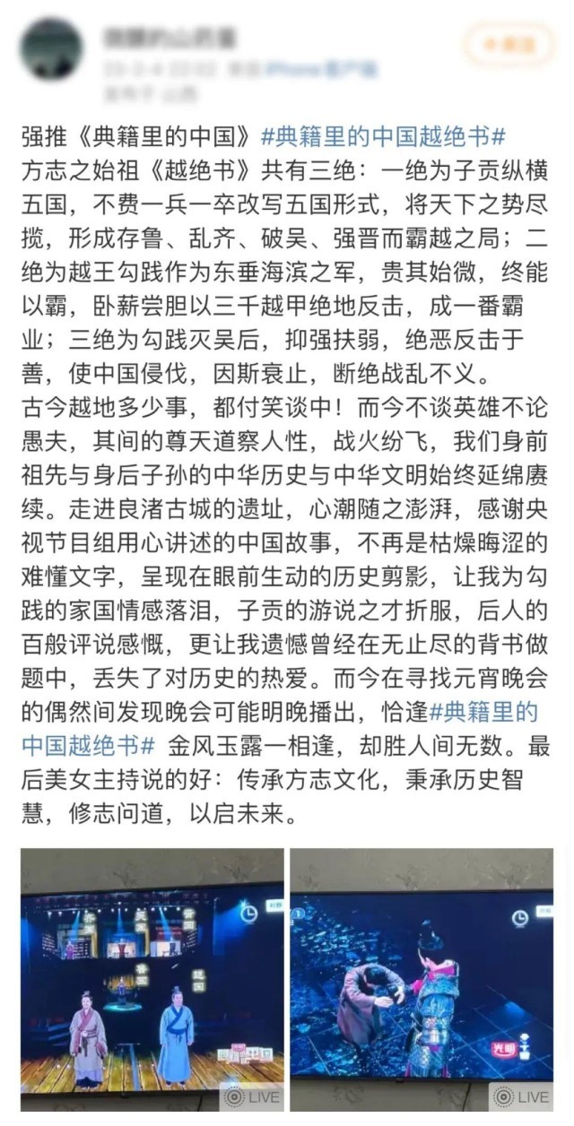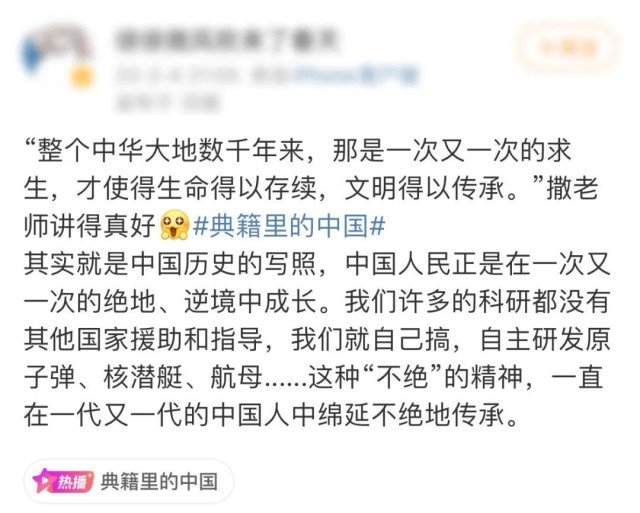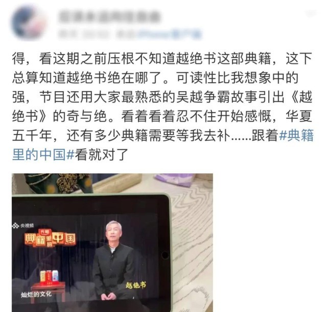 節(jié)目成功傳遞了杰出典籍蘊(yùn)含的精神內(nèi)核和文化靈魂,激發(fā)了觀眾內(nèi)心對(duì)中華民族優(yōu)秀傳統(tǒng)文化的認(rèn)同。