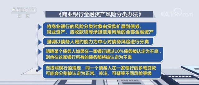 央視網(wǎng)消息:銀保監(jiān)會(huì)、中國人民銀行制定《商業(yè)銀行金融資產(chǎn)風(fēng)險(xiǎn)分類辦法》,于2月11日正式對(duì)外發(fā)布。推動(dòng)商業(yè)銀行加強(qiáng)信用風(fēng)險(xiǎn)管理、提升服務(wù)實(shí)體經(jīng)濟(jì)水平。