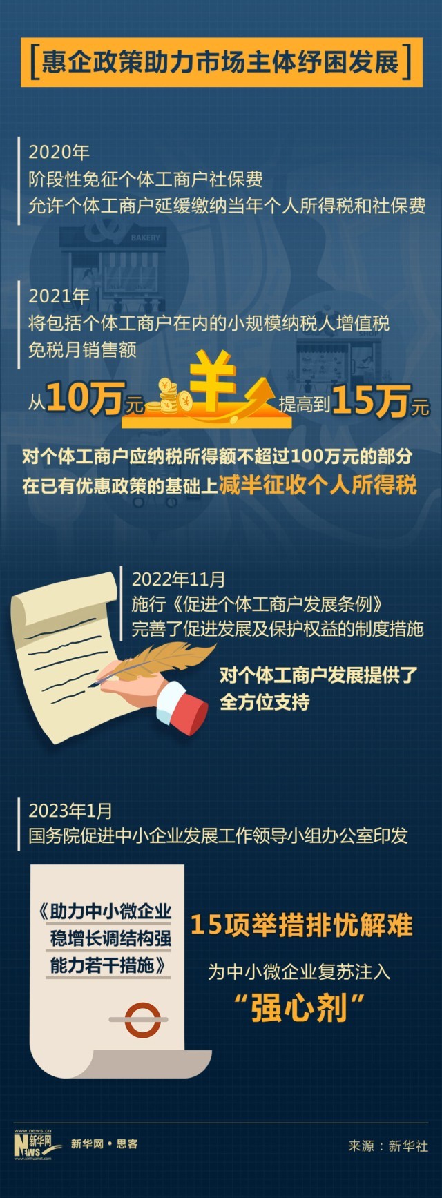 煥發(fā)個(gè)體經(jīng)濟(jì)生機(jī)活力,離不開稅收“輸血給氧”。近年來,各地區(qū)、各部門也出臺(tái)了一系列幫扶個(gè)體工商戶等小微市場主體發(fā)展的政策措施,精準(zhǔn)扶困。