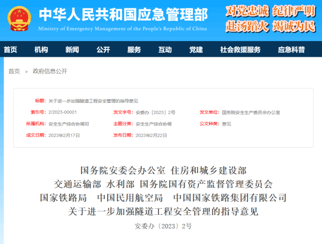 國務院安委辦等八部門:進一步加強隧道工程安全管理