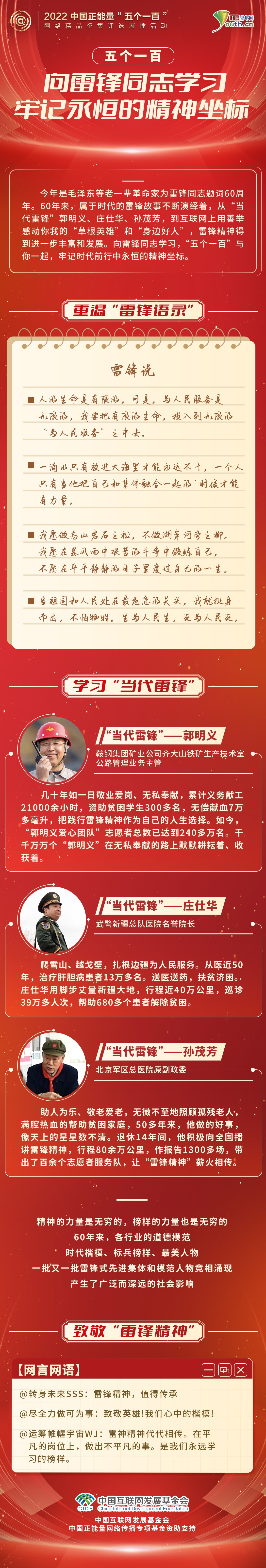 “五個(gè)一百”:向雷鋒同志學(xué)習(xí),牢記永恒的精神坐標(biāo)