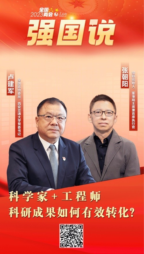 產學研深度融合,不僅是提高科技成果轉化與產業(yè)化水平的具體路徑之一,也是培養(yǎng)科技創(chuàng)新人才的關鍵手段。2023年全國兩會期間,全國政協(xié)委員、西安交通大學黨委書記盧建軍,搜狐創(chuàng)始人、董事局主席兼首席執(zhí)行官張朝陽做客人民網《強國說》欄目,就產學研深度融合相關話題展開對話。
