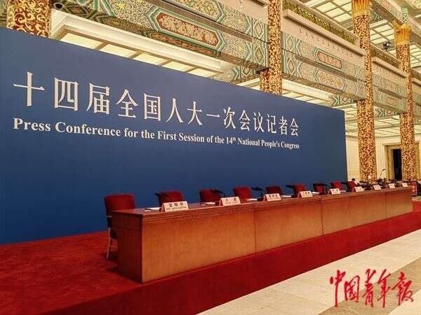 十四屆全國(guó)人大一次會(huì)議記者會(huì)現(xiàn)場(chǎng),9把紅色靠背的椅子,正在等待今天記者會(huì)的主角。 中青報(bào)·中青網(wǎng)記者 邱晨輝/攝