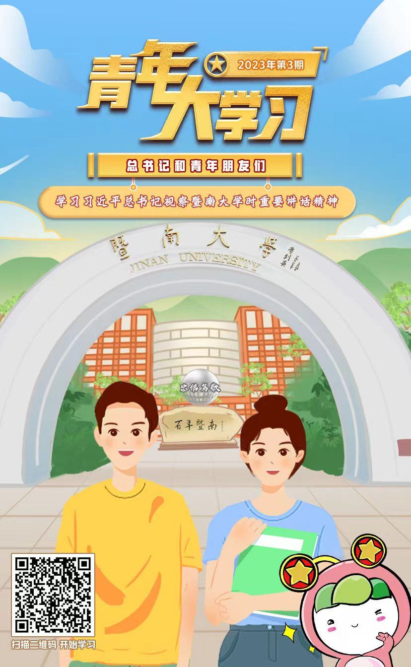 中國青年報(bào)客戶端訊(中青報(bào)·中青網(wǎng)記者 杜沂蒙)3月13日,由共青團(tuán)中央宣傳部和中國青年報(bào)·中青在線聯(lián)合推出的“青年大學(xué)習(xí)”網(wǎng)上主題團(tuán)課2023年第3期上線。2018年10月24日,習(xí)近平總書記到暨南大學(xué)視察并指出,我國有5000多萬海外僑胞,這是我國發(fā)展的一個(gè)獨(dú)特優(yōu)勢,改革開放有海外僑胞的一份功勞,暨南大學(xué)要堅(jiān)持自己的辦學(xué)特色,把學(xué)校辦得更好,為海外僑胞回祖國學(xué)習(xí)、傳承中華文化創(chuàng)造更好條件。本期“青年大學(xué)習(xí)”網(wǎng)上主題團(tuán)課“學(xué)習(xí)習(xí)近平總書記視察暨南大學(xué)時(shí)重要講話精神”,帶領(lǐng)廣大團(tuán)員青年一起學(xué)習(xí)相關(guān)內(nèi)容。截至目前,“青年大學(xué)習(xí)”2023年兩會特輯參與學(xué)習(xí)互動的人數(shù)為57738080人,總點(diǎn)擊量為113980661。