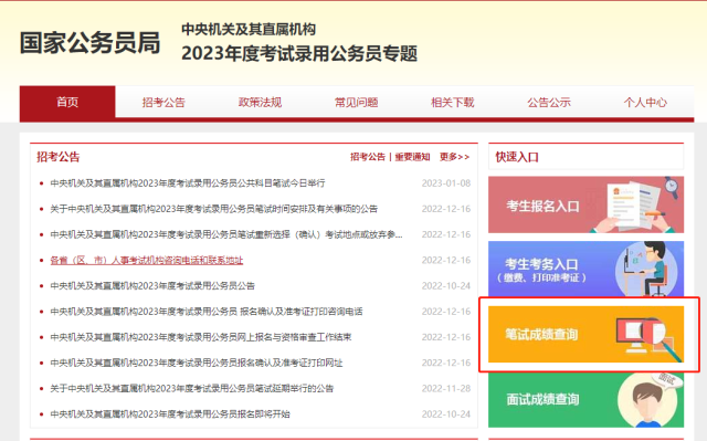 2023國(guó)考成績(jī)查詢?nèi)肟陂_放