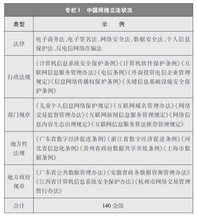 中國(guó)網(wǎng)絡(luò)立法隨著互聯(lián)網(wǎng)發(fā)展經(jīng)歷了從無(wú)到有、從少到多、由點(diǎn)到面、由面到體的發(fā)展過(guò)程。第一階段從1994年至1999年,是接入互聯(lián)網(wǎng)階段。上網(wǎng)用戶和設(shè)備數(shù)量穩(wěn)步增加。這一階段網(wǎng)絡(luò)立法主要聚焦于網(wǎng)絡(luò)基礎(chǔ)設(shè)施安全,即計(jì)算機(jī)系統(tǒng)安全和聯(lián)網(wǎng)安全。第二階段從2000年至2011年,是PC互聯(lián)網(wǎng)階段。隨著計(jì)算機(jī)數(shù)量逐步增加、上網(wǎng)資費(fèi)逐步降低,用戶上網(wǎng)日益普遍,網(wǎng)絡(luò)信息服務(wù)迅猛發(fā)展。這一階段網(wǎng)絡(luò)立法轉(zhuǎn)向側(cè)重網(wǎng)絡(luò)服務(wù)管理和內(nèi)容管理。第三階段從2012年至今,是移動(dòng)互聯(lián)網(wǎng)階段。這一階段網(wǎng)絡(luò)立法逐步趨向全面涵蓋網(wǎng)絡(luò)信息服務(wù)、信息化發(fā)展、網(wǎng)絡(luò)安全保護(hù)等在內(nèi)的網(wǎng)絡(luò)綜合治理。在這一進(jìn)程中,中國(guó)制定出臺(tái)網(wǎng)絡(luò)領(lǐng)域立法140余部,基本形成了以憲法為根本,以法律、行政法規(guī)、部門(mén)規(guī)章和地方性法規(guī)、地方政府規(guī)章為依托,以傳統(tǒng)立法為基礎(chǔ),以網(wǎng)絡(luò)內(nèi)容建設(shè)與管理、網(wǎng)絡(luò)安全和信息化等網(wǎng)絡(luò)專門(mén)立法為主干的網(wǎng)絡(luò)法律體系,為網(wǎng)絡(luò)強(qiáng)國(guó)建設(shè)提供了堅(jiān)實(shí)的制度保障。