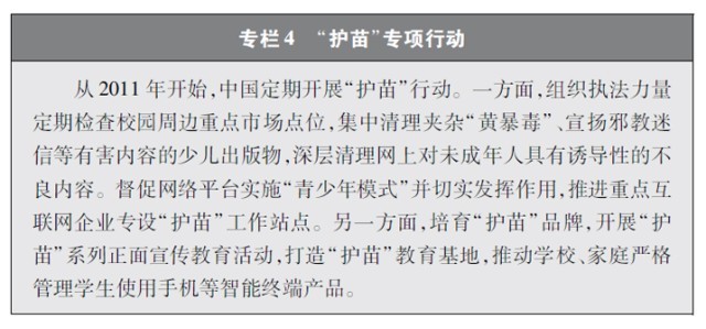 加強(qiáng)青少年網(wǎng)絡(luò)法治宣傳教育。青少年是祖國(guó)的未來(lái)、民族的希望。青少年網(wǎng)民在中國(guó)網(wǎng)民中的占比逐步增長(zhǎng)。作為互聯(lián)網(wǎng)的“原住民”,青少年是網(wǎng)上學(xué)習(xí)、交流、生活最活躍的參與者、實(shí)踐者,其合法權(quán)益也更易受到網(wǎng)絡(luò)違法活動(dòng)的侵害。中國(guó)從保護(hù)青少年網(wǎng)絡(luò)權(quán)益,促進(jìn)青少年健康成長(zhǎng)、全面發(fā)展出發(fā),遵循青少年身心發(fā)展規(guī)律,貼近青少年學(xué)習(xí)生活實(shí)際,聚焦網(wǎng)絡(luò)沉迷、網(wǎng)絡(luò)欺凌、網(wǎng)絡(luò)淫穢色情信息等重點(diǎn)問(wèn)題,通過(guò)普法微綜藝、兒童普法話劇、網(wǎng)絡(luò)普法故事廣播、網(wǎng)絡(luò)普法云課堂、學(xué)法用法知識(shí)競(jìng)賽、法治副校長(zhǎng)進(jìn)校園、編寫(xiě)網(wǎng)絡(luò)普法讀本等生動(dòng)活潑、豐富多彩的形式開(kāi)展法治宣傳教育,逐步形成了政府、社會(huì)、學(xué)校、家庭相結(jié)合的法治宣傳教育格局,為提升青少年網(wǎng)民法治意識(shí)和網(wǎng)絡(luò)安全素養(yǎng)提供了全面保障。