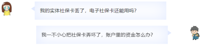 實體卡正常時,電子社??ǚ?strong>均可使用;實體卡臨時掛失、掛失時,電子社保卡服務經(jīng)本人授權(quán)可使用;實體卡注銷后,電子社??ㄖ?strong>與個人業(yè)務相關(guān)的服務不可用。