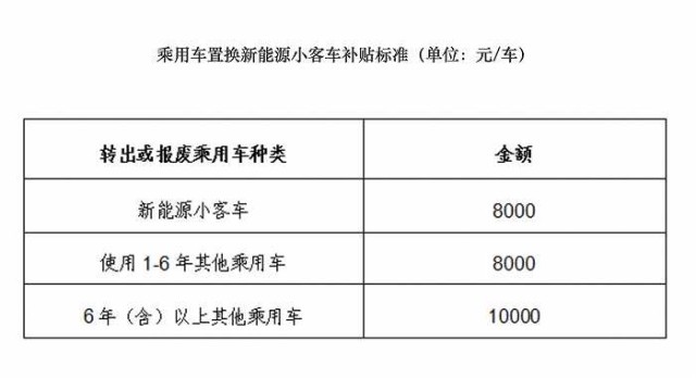 補(bǔ)貼標(biāo)準(zhǔn)及補(bǔ)貼方式:補(bǔ)貼標(biāo)準(zhǔn)按照轉(zhuǎn)出本市或報(bào)廢的乘用車類型(新能源小客車和其他乘用車)和使用年限劃分。補(bǔ)貼資金以轉(zhuǎn)賬方式發(fā)放到符合補(bǔ)貼條件的對(duì)象銀行賬戶上。