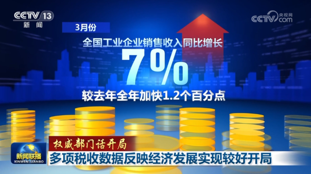 央視網(wǎng)消息(新聞聯(lián)播):在國(guó)新辦今天(4月6日)舉行的“權(quán)威部門(mén)話開(kāi)局”系列主題新聞發(fā)布會(huì)上,國(guó)家稅務(wù)總局負(fù)責(zé)人表示,多項(xiàng)稅收數(shù)據(jù)反映出我國(guó)經(jīng)濟(jì)發(fā)展實(shí)現(xiàn)了較好開(kāi)局。