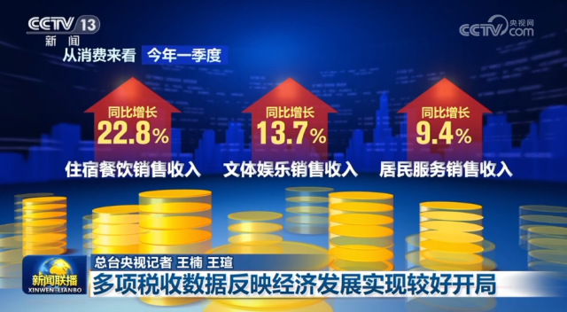 從消費(fèi)來(lái)看,一季度,住宿餐飲、文體娛樂(lè)、居民服務(wù)等銷(xiāo)售收入同比分別增長(zhǎng)22.8%、13.7%和9.4%,回升較為明顯,潛力加快釋放。