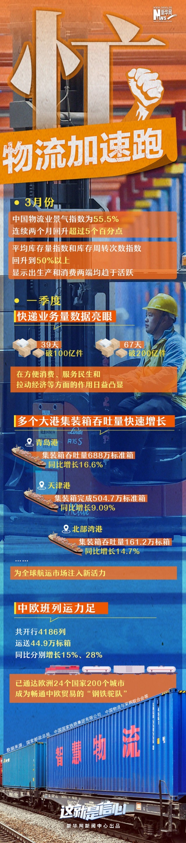 物流是國民經(jīng)濟運行的血脈。1-3月,快遞業(yè)務(wù)、中歐班列、集裝箱吞吐量等多個維度的物流數(shù)據(jù)持續(xù)向好,共同交織出了繁忙中國的經(jīng)濟加速度。