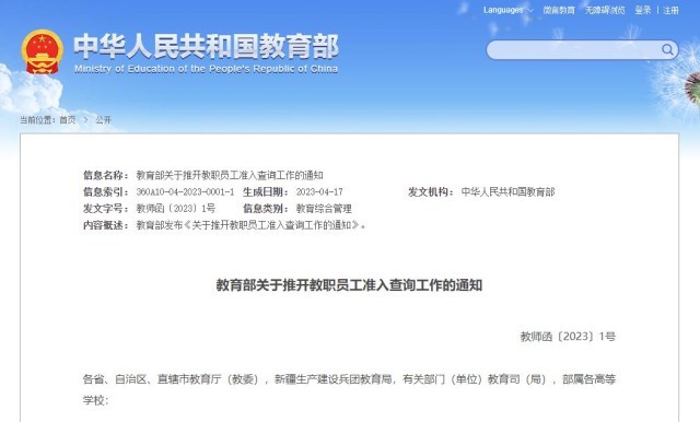 央視網(wǎng)消息:據(jù)教育部,近日,教育部印發(fā)《關于推開教職員工準入查詢工作的通知》(以下簡稱《通知》)。《通知》堅持以習近平新時代中國特色社會主義思想為指導,深入貫徹習近平法治思想,就依法推開準入查詢制度,嚴格落實從業(yè)禁止制度作出了規(guī)定,旨在進一步加強師德師風建設,對師德違規(guī)問題“零容忍”。具體如下: