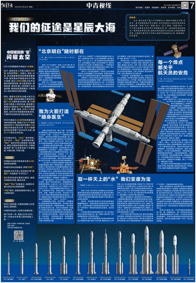 今天,我們迎來(lái)了第八個(gè)中國(guó)航天日。隨著中國(guó)航天不斷“走出去”,昔日的神秘面紗早已揭開(kāi),近年來(lái)更是以自信開(kāi)放的姿態(tài)頻頻出圈:“神舟”飛天,“嫦娥”奔月,“北斗”指路,“祝融”探火,一個(gè)個(gè)國(guó)之重器成為當(dāng)代青少年最愛(ài)追的“星”。本版邀約奮戰(zhàn)在航天一線的優(yōu)秀青年代表,請(qǐng)他們講述逐夢(mèng)太空征途上創(chuàng)造的精彩故事,以期吸引更多青少年加入探索宇宙奧秘的大軍,格物致知、叩問(wèn)蒼穹。
