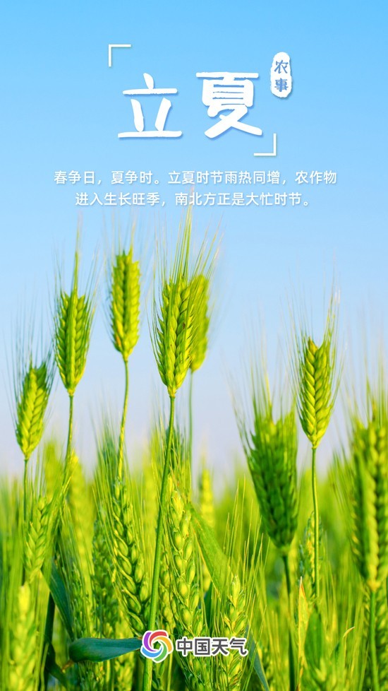 如果說春是生的季節(jié),那么夏就是長的季節(jié)?!稓v書》曰:“斗指東南,維為立夏,萬物至此皆長大,故名立夏也?!绷⑾?,是標示萬物進入旺季生長的一個重要節(jié)氣。此時,日照增加、氣溫漸升、雷雨增多,農作物進入了茁壯成長階段。春播作物漸漸長大,夏收作物進入生長后期,冬小麥揚花灌漿,油菜接近成熟,大江南北都進入了農事繁忙時期。
