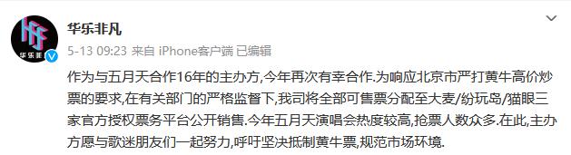 五月天北京演唱會主辦方華樂非凡微博截圖