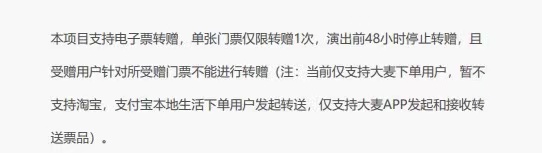 轉(zhuǎn)贈比錄信息在靈活性上差一點的是,已經(jīng)轉(zhuǎn)贈的票無法二次轉(zhuǎn)贈,如果購票者臨時有事情無法觀看演出,也只能自己承擔(dān)損失。