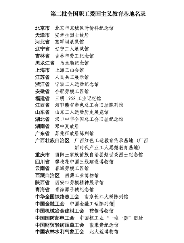 全國總工會(huì)命名第二批全國職工愛國主義教育基地