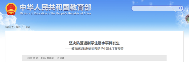 教育部發(fā)布預(yù)防學(xué)生溺水工作預(yù)警