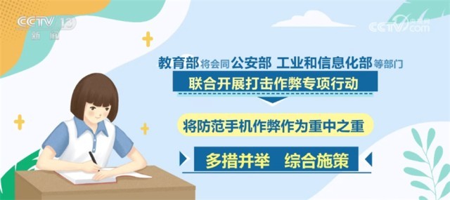 同時,會同公安部、工業(yè)和信息化部等部門聯(lián)合開展打擊作弊專項行動,將防范手機作弊作為重中之重,多措并舉、綜合施策,指導(dǎo)各地強化人防、物防、技防等措施,嚴(yán)格入場安檢規(guī)范,強化考場監(jiān)考巡考,嚴(yán)厲打擊利用手機等通信設(shè)備作弊行為。對于在高考中存在作弊行為的考生和人員,將依法依規(guī)嚴(yán)肅處理,堅決維護高考的公平公正。
