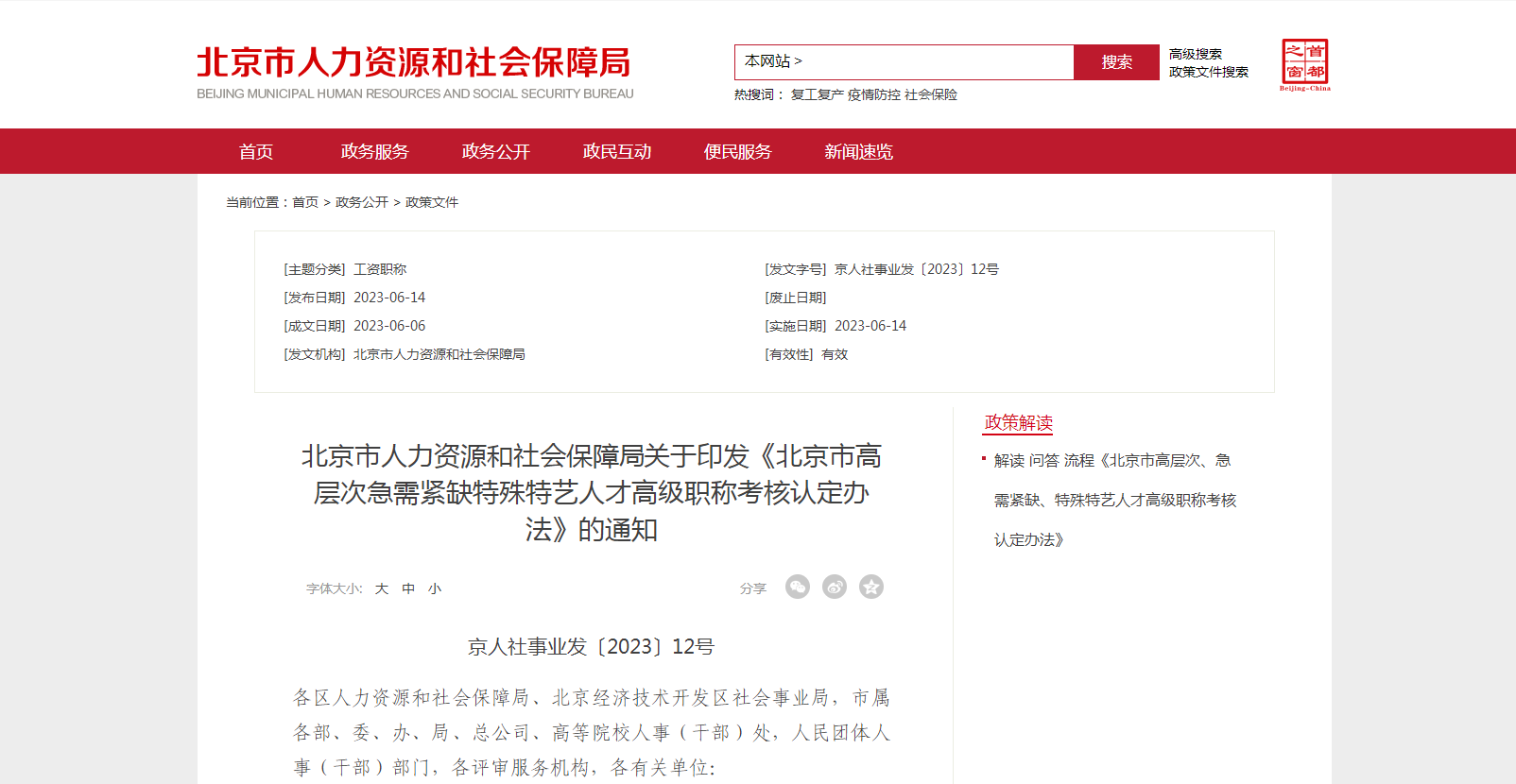 6月14日,北京市人力資源和社會保障局發(fā)布《關于進一步加強和改進職稱工作的通知》及相關配套措施,明確對高層次、急需緊缺人才等不拘一格“評”人才。
