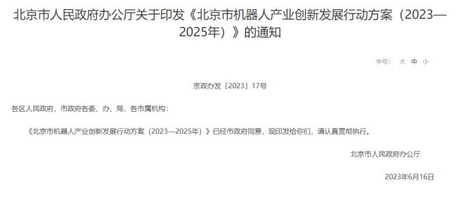 央視網(wǎng)消息:近日,北京市人民政府發(fā)布《北京市機器人產(chǎn)業(yè)創(chuàng)新發(fā)展行動方案(2023—2025年)》。主要內(nèi)容如下: