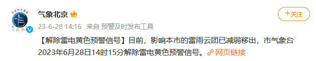 北京市氣象臺(tái)解除雷電黃色預(yù)警