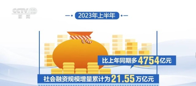中國人民銀行發(fā)布的數(shù)據(jù)還顯示,2023年上半年社會(huì)融資規(guī)模增量累計(jì)為21.55萬億元,金融對(duì)實(shí)體經(jīng)濟(jì)支持力度持續(xù)加大。