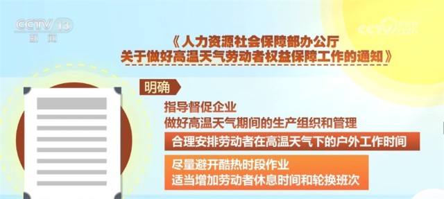 央視網(wǎng)消息:近日,人力資源和社會(huì)保障部就做好高溫天氣勞動(dòng)者權(quán)益保障工作印發(fā)《通知》。其中,對(duì)快遞、外賣人員等靈活就業(yè)人員的高溫天氣下如何保障做出了專門的要求。