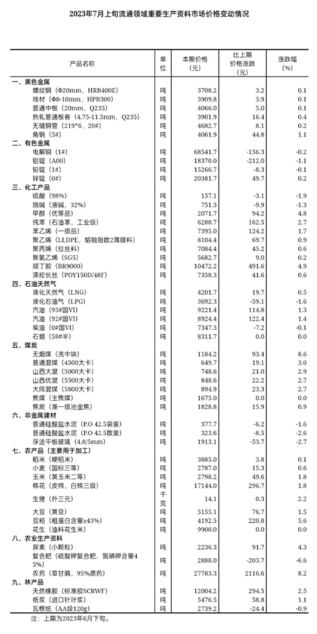 國家統(tǒng)計局:7月上旬流通領(lǐng)域重要生產(chǎn)資料市場35種產(chǎn)品價格上漲